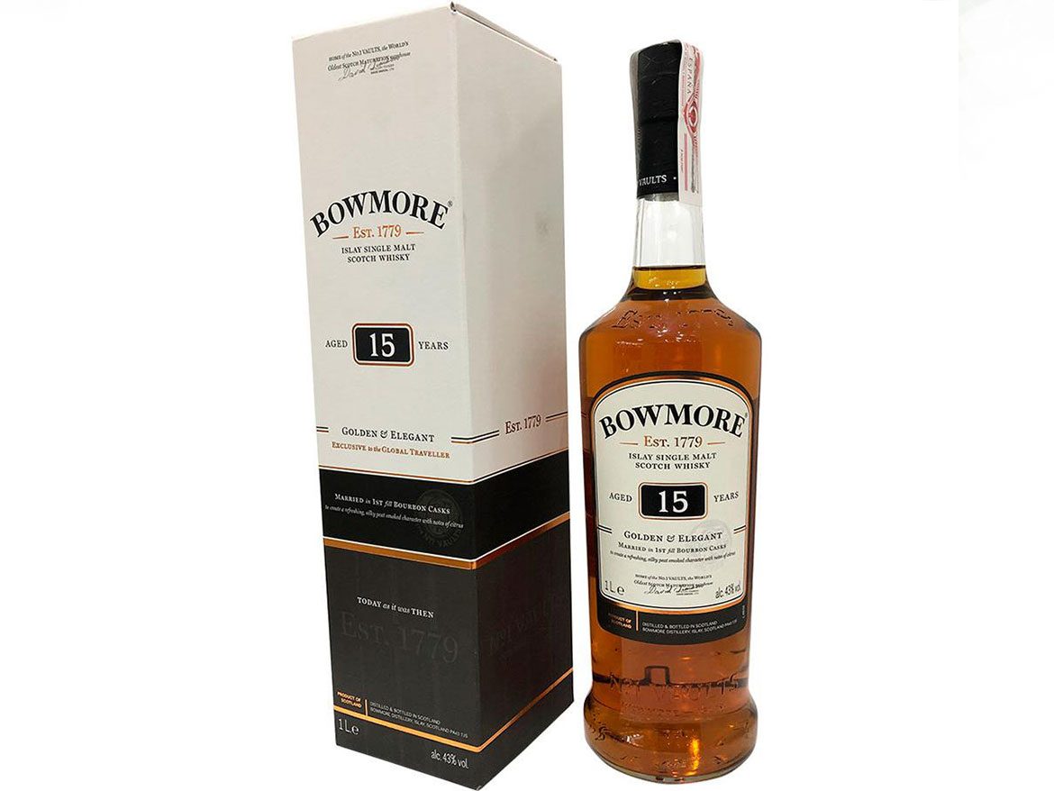 2017 yılında travel retail olarak piyasaya çıkan Bowmore 15 Golden & Elegant ilk dolum bourbon ve hogshead fıçılarda olgunlaştırılmaktadır. Bowmore 15 Golden & Elegant, 2018 International Spirit Challenge’da altın madalya kazanmış bir travel retail ekspresyonudur.