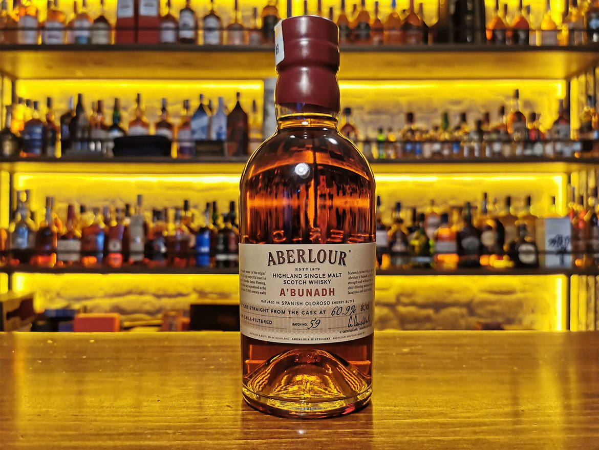 Aberlour A’bunadh, yaş belirtmeyen fıçı gücünde şişelenen ve çevresel koşullara göre her partide minör alkol yüzdesi farklılıkları gösteren bir viskidir. Tahmini olarak 5 ila 25 yaş arasında oloroso şeri fıçılarında olgunlaştırılmış viskilerin fıçı gücünde şişelenmesi ile ortaya çıkan bir ekspresyondur. 1975 yılında damıtımevinde bulunan bir zaman kapsülünün içinden, 1898 yılında damıtımevinde çıkan bir yangından bahseden bir gazete ve yine 1898 yılına ait bir şişe Aberlour çıkmıştır. Bulunan şişe Keith Moray tarafından laboratuvarda inceletilmiş ve bulunan reçete A’bunadh’ı ortaya çıkarmıştır. Galce’de “köken” demek olan A’bunadh’ın mevcut tadım notu 59. batch için olup 2017 yılında %60,9 alkol oranı ile şişelenmiştir. A’bunadh “San Francisco World Spirits Competitions”’da 2007, 2008, 2009 ve 2011 yıllarında gümüş madalya kazanmıştır.