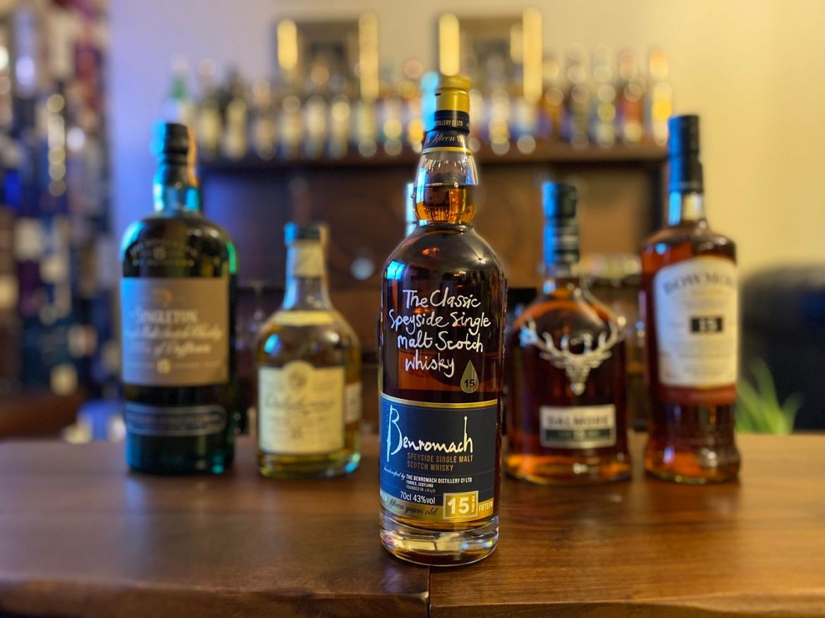 2015 yılında piyasaya sunulan Benromach 15 damıtımevinin çekirdek ürün portföyüne katılmıştır. Olgunlaştırmasında, kullanılmış burbon ve şeri fıçılar kullanılan Benromach 15 diğer Speyside viskilerine oranla nispeten yüksek olan turba notalarıyla ön plana çıkıyor. Whisky Exchange tarafından gerçekleştirelen halka açık kör tadım etkinliğinde birincilik kazanmıştır.