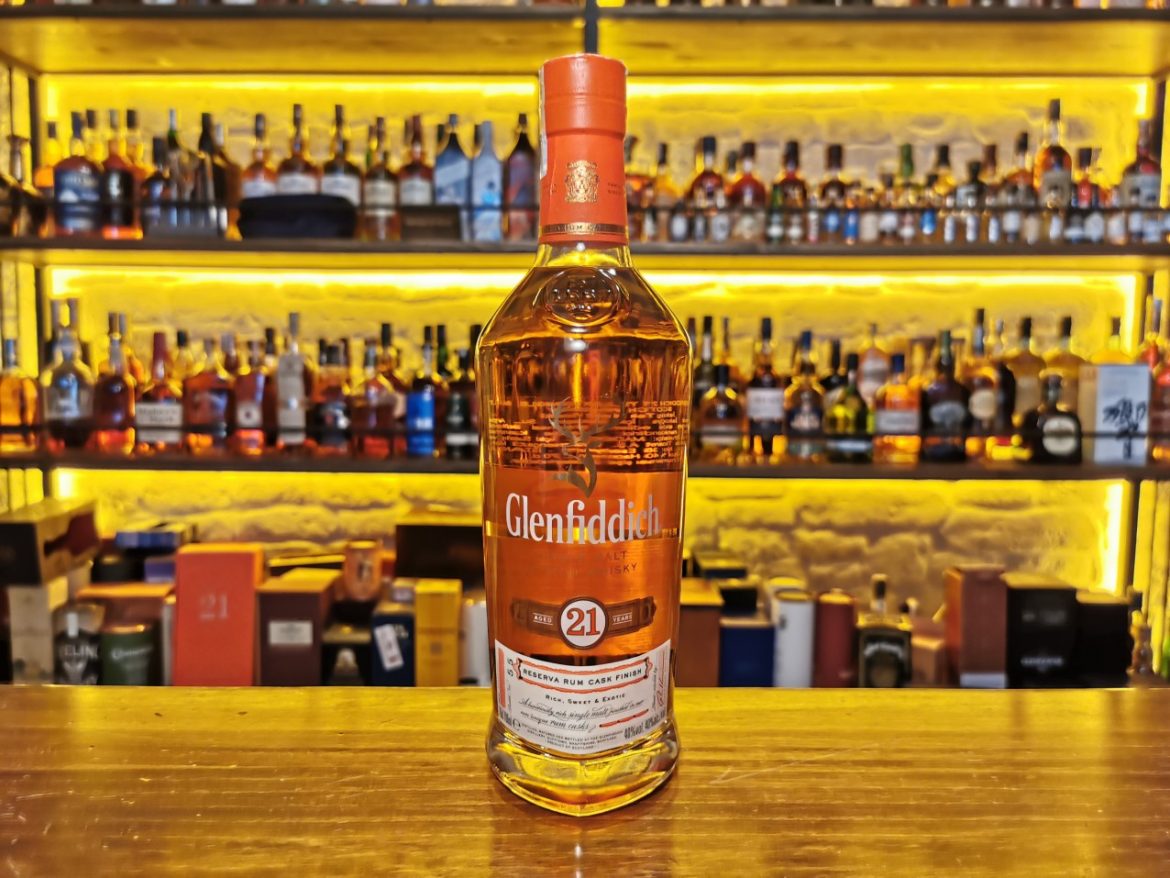 Glenfiddich 21 ( Reserva Rum Cask Finish ) damıtımevinin çekirdek ürün gamının en yaşlı ekspresyonu. 21 yıl boyunca şeri ve bourbon fıçılarında yıllandıktan sonra, 4 ay Karayipler’den getirililen ilk dolum rom fıçılarında bitiş veriliyor. International Wine &Spirit Competition 2017 altın madalyalı.